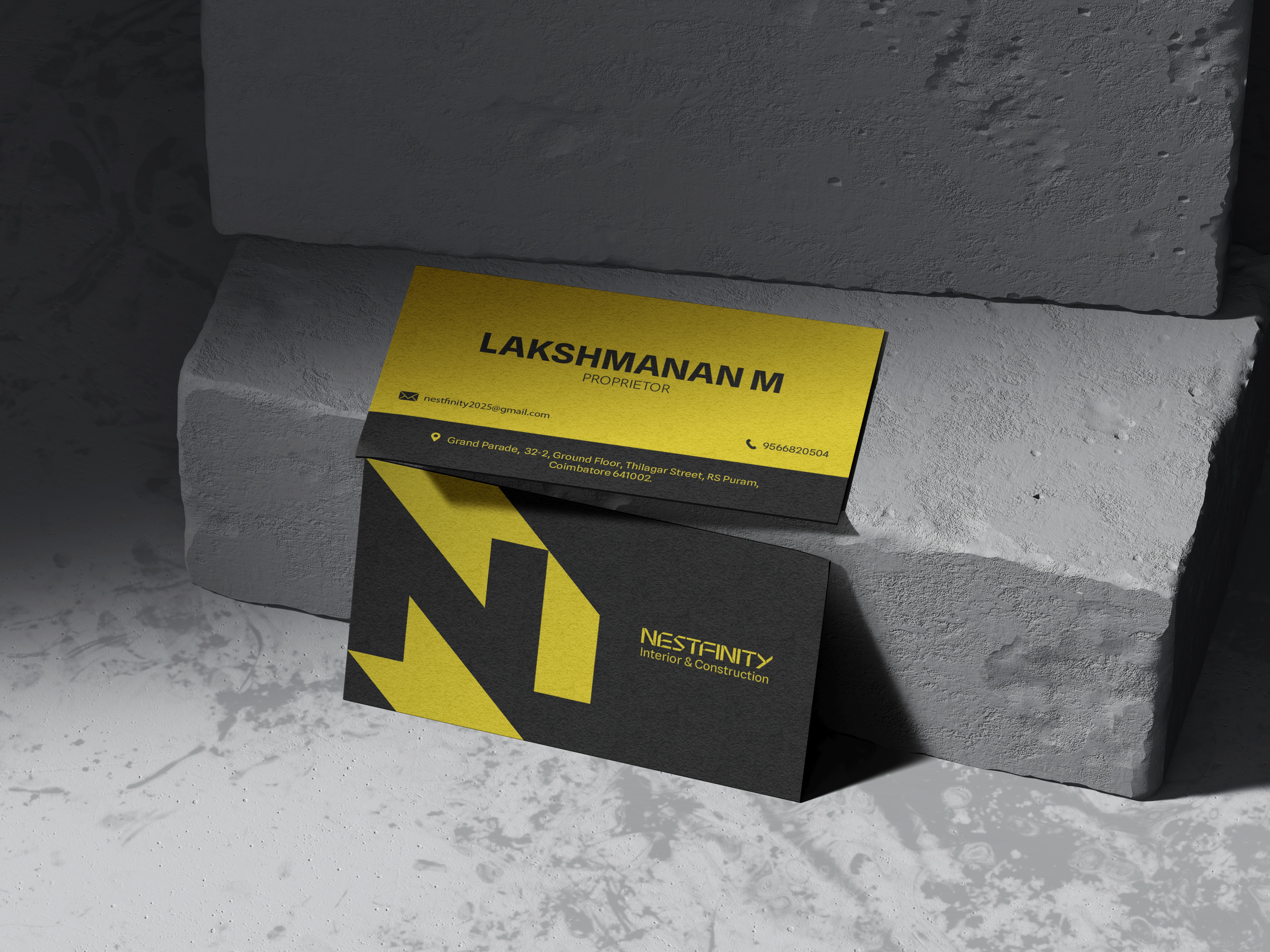 One of the key challenges was designing a logo that clearly represented both construction and interior services while incorporating the letter “N.” Initially, we explored concepts combining a symbol and wordmark, but later focused on a symbol-based approach. After creating and refining over 25 concepts, we finalized a design where a building structure forms the shape of the letter “N,” making the concept both meaningful and visually distinctive.