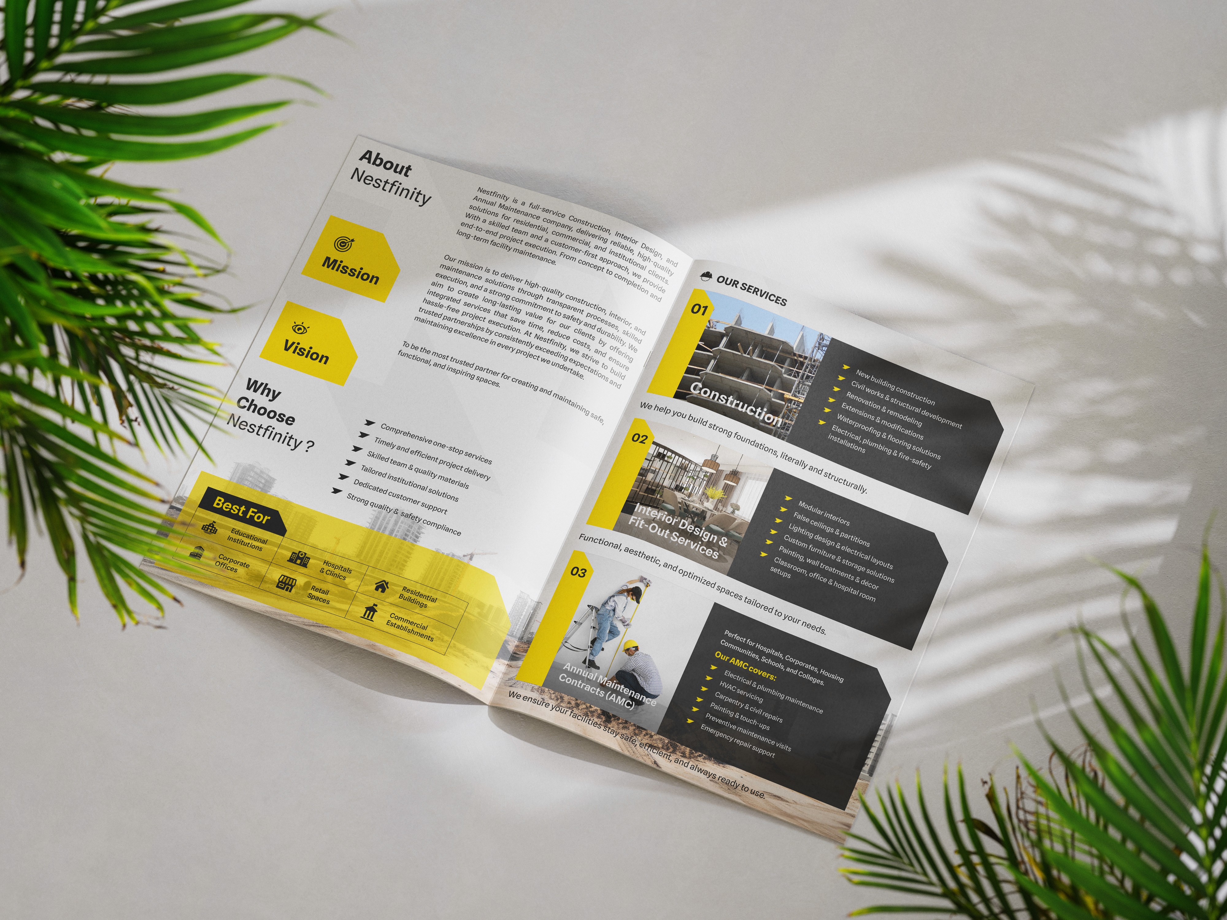 Our mission was to develop a strong and recognizable visual identity for Nestfinity that represents their work in construction and interiors. The goal was to design a logo that is simple, modern, and concept-driven, ensuring the brand stands out while clearly reflecting its industry and services.