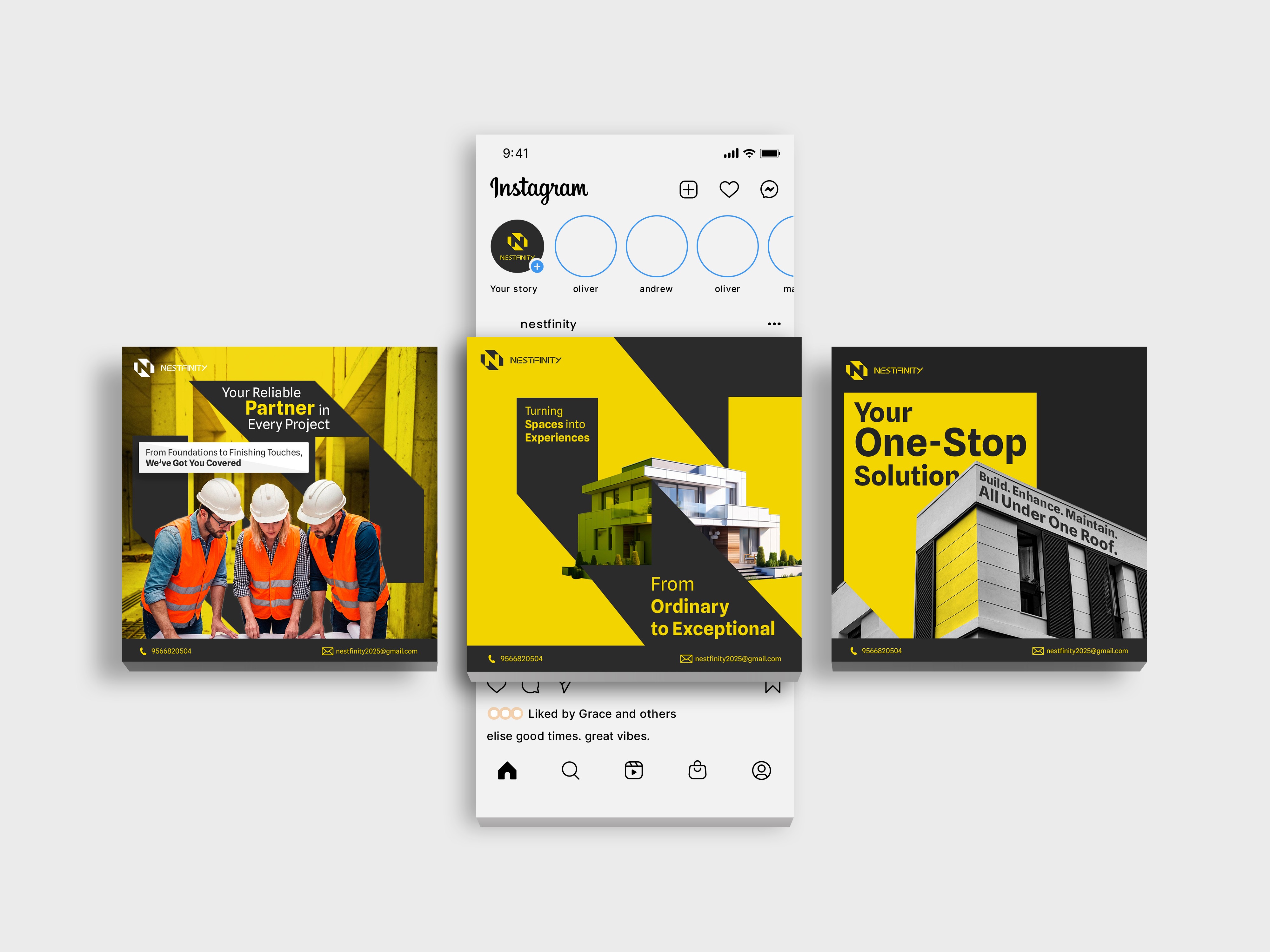 Our mission was to develop a strong and recognizable visual identity for Nestfinity that represents their work in construction and interiors. The goal was to design a logo that is simple, modern, and concept-driven, ensuring the brand stands out while clearly reflecting its industry and services.